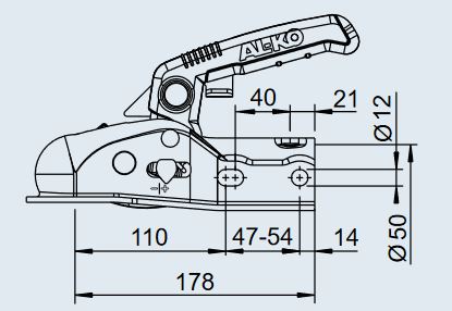 Kuulakytkin AK 161 jarrullisiin perävaunuihin 1600 kg saakka.
