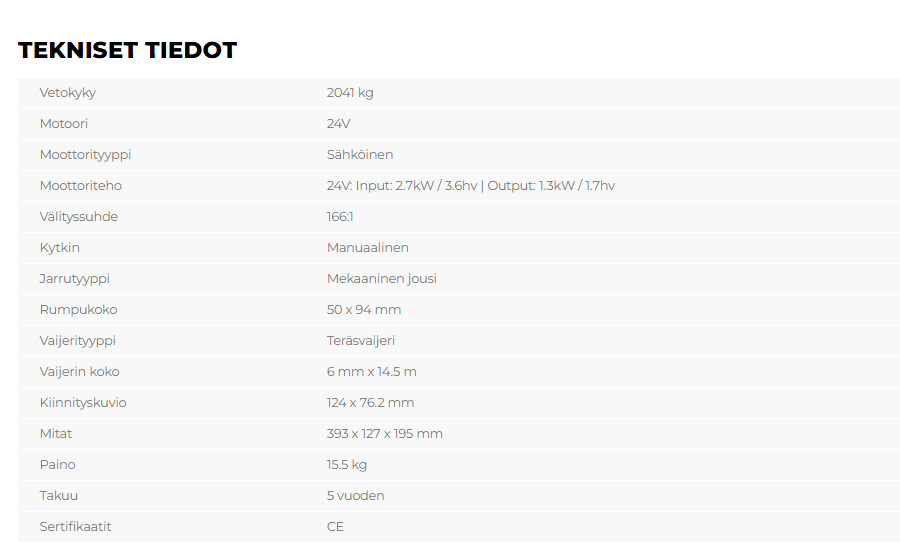 Sarja sisältää mallit 12V- ja 24V-versioina joko teräsköydellä tai Armortek Extreme -köydellä, joka on markkinoiden kestävin synteettinen köysi.